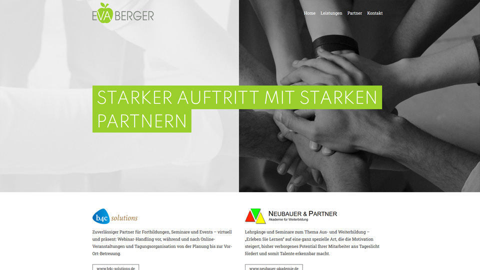 Für unsere Kundin Eva Berger, die im Bereich Veranstaltungsmanagement tätig ist, haben wir ein Relaunch der bestehenden Webseite übernommen. Beim Relaunch überarbeiteten wir den Internetauftritt komplett und entwickelten eine neue Webpräsenz.